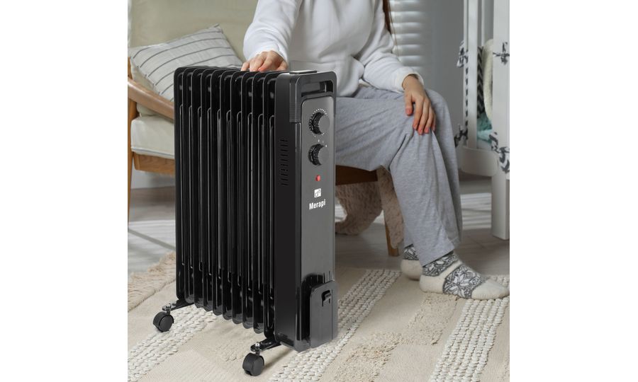 Leistungsstark, leise, wartungsfrei, zuverlässig, sicher und effizient – diese sechs Worte beschreiben den Ölradiator G21 Merapi treffend. Der elfrippige Innenraumheizer mit drei Leistungsstufen (1000 / 1500 / 2500 W) heizt Räume mit wenig oder gar keiner Heizung schnell auf und hält die gewählte Temperatur dann automatisch über einThermostat. Verwenden Sie ihn in Wohn- und Schlafzimmern,im Arbeitszimmer oder Büro sowie im Ferienhaus. Dank derrollbaren Kufe und des praktischen Griffs können Sie ihn leicht dorthin bringen, wo die Wärme benötigt wird.