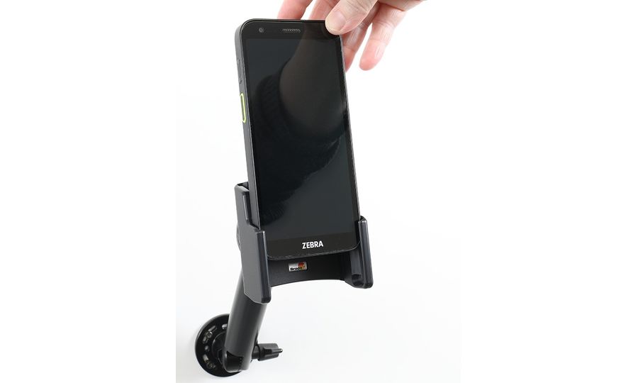 Die Halterung ist sehr robust, das Terminal klappert oder vibriert darin nicht. Die Halterung wird am Brodit ProClip oder an Brodit-Montagebasen und -armen befestigt.
